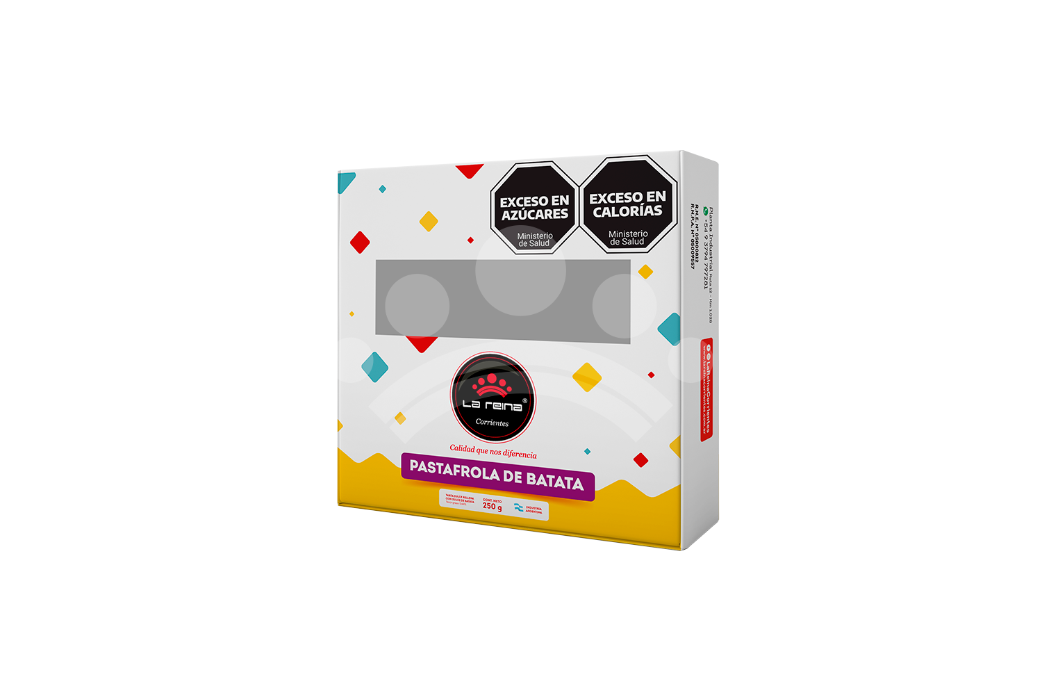 Ingredientes: Dulce de batata a la vainilla (batata, jarabe de glucosa, gelificante: INS 406, espesante: INS 417, conservantes: INS 211, INS 202, acidulante: INS 330, colorantes: INS 102 y annato, aromatizante: etilvainillina), harina de trigo 0000 enriquecida según ley n.º 25.630 (*), azúcar, huevo, compuesto graso de repostería (aceite vegetal refinado, agua, manteca, aceite vegetal parcialmente hidrogenado, jarabe de glucosa, sal, emulsionante: INS 471, saborizante idéntico al natural, conservante: INS 202, acidulante: INS 330, antioxidantes: INS 319 y/o INS 321, colorante: INS 160i), polvo de hornear (almidón de maíz, leudante químico: pirofosfato ácido de sodio y bicarbonato de sodio), aromatizante idéntico al natural limón, saborizante: vainilla extra concentrada.